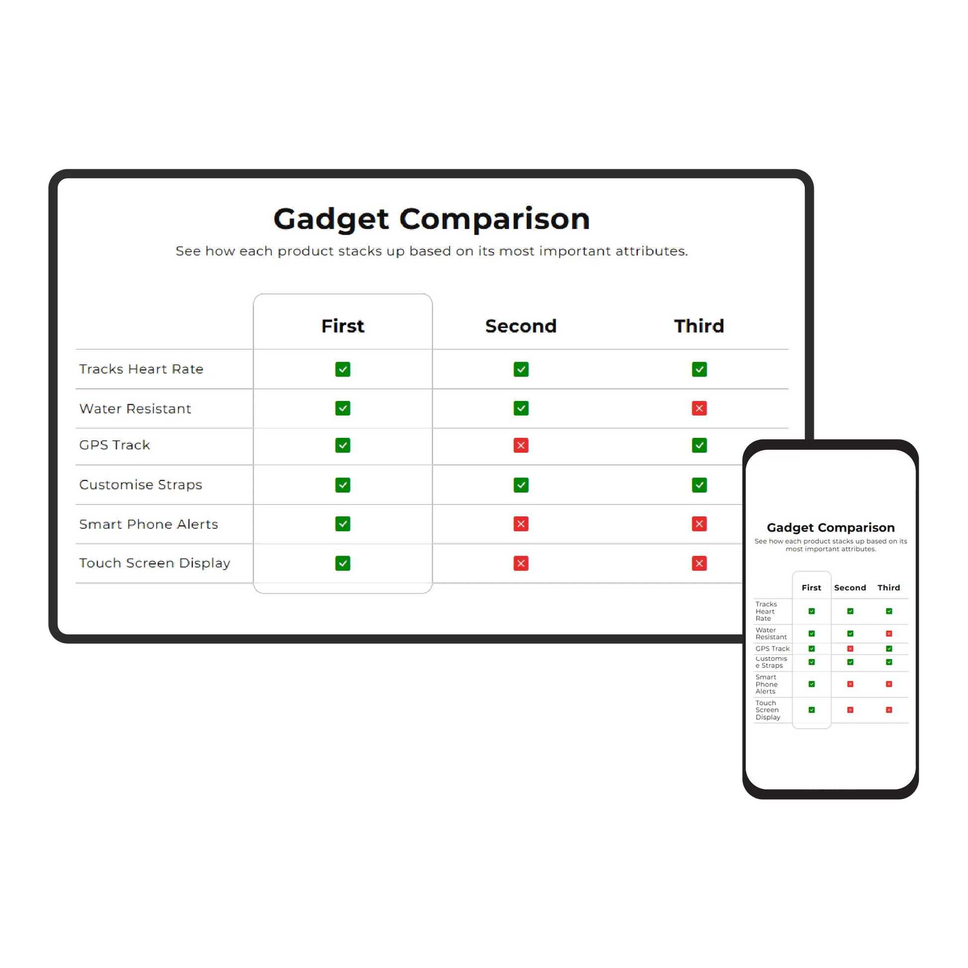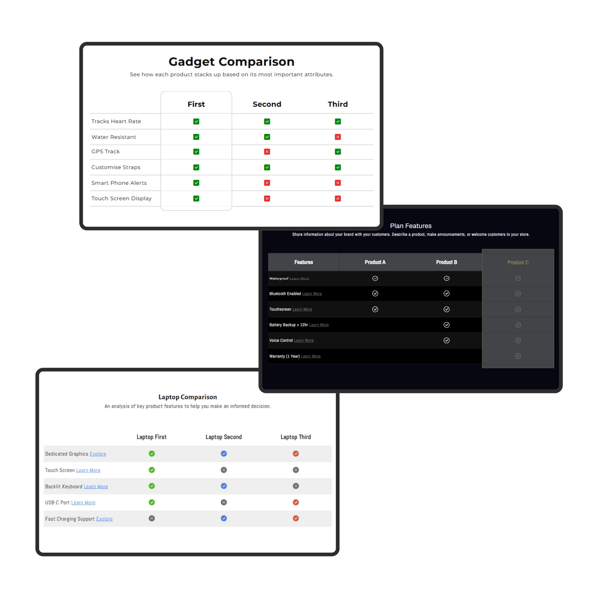 Ansprechende Vorlagen zum Erstellen beeindruckender Vergleichstabellen für Produkte/Kollektionen