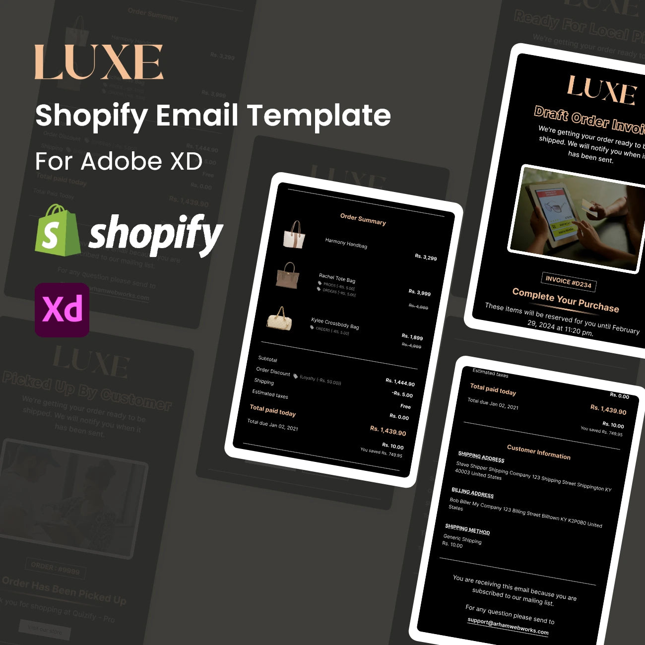 Eleganz – Design von Shopify-Benachrichtigungen und Transaktions-E-Mails – Adobe XD