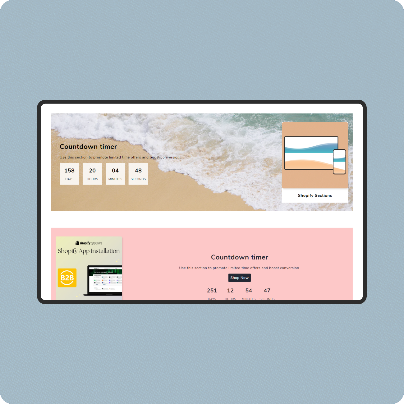 Introducing Iconic, the ultimate Shopify theme section for creating countdown collections. Increase sales with this powerful tool that adds a sense of urgency for potential customers. Fully customizable and simple to use, Iconic is a must-have for any e-commerce website.
