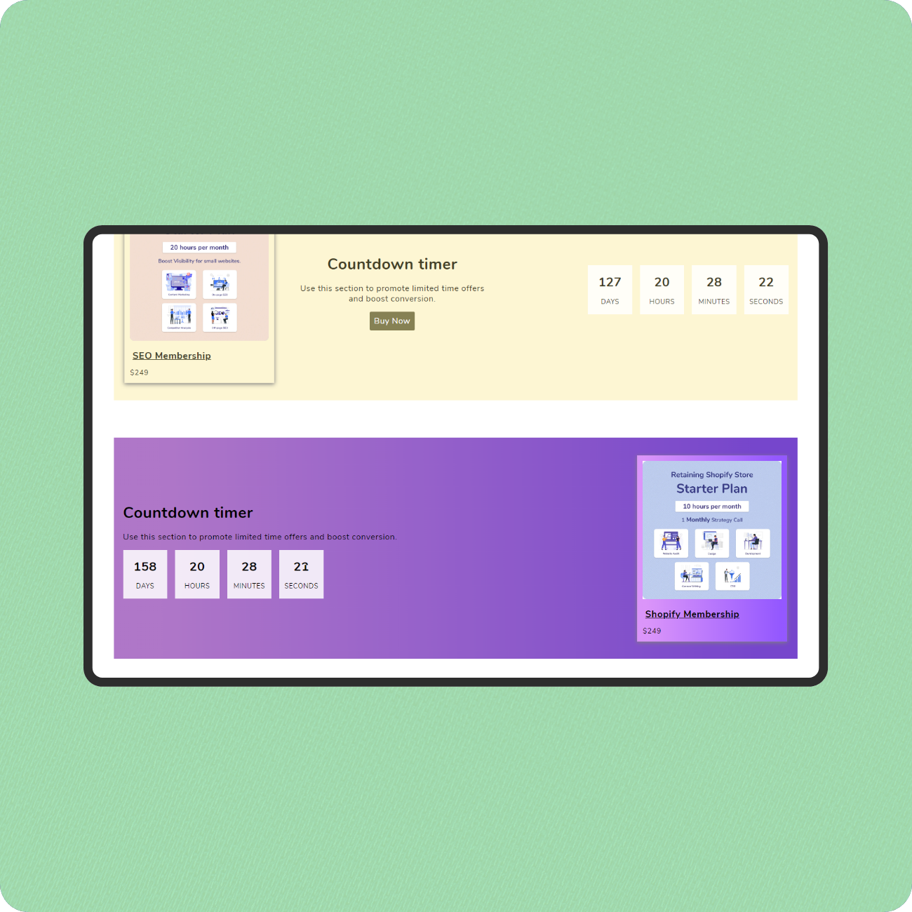 Optimize your e-commerce store with Iconic - Countdown with product Shopify theme section. Increase conversion rates with a sleek countdown display for exclusive sales and limited time offers. Increase interactivity with customers for a more engaging shopping experience.
