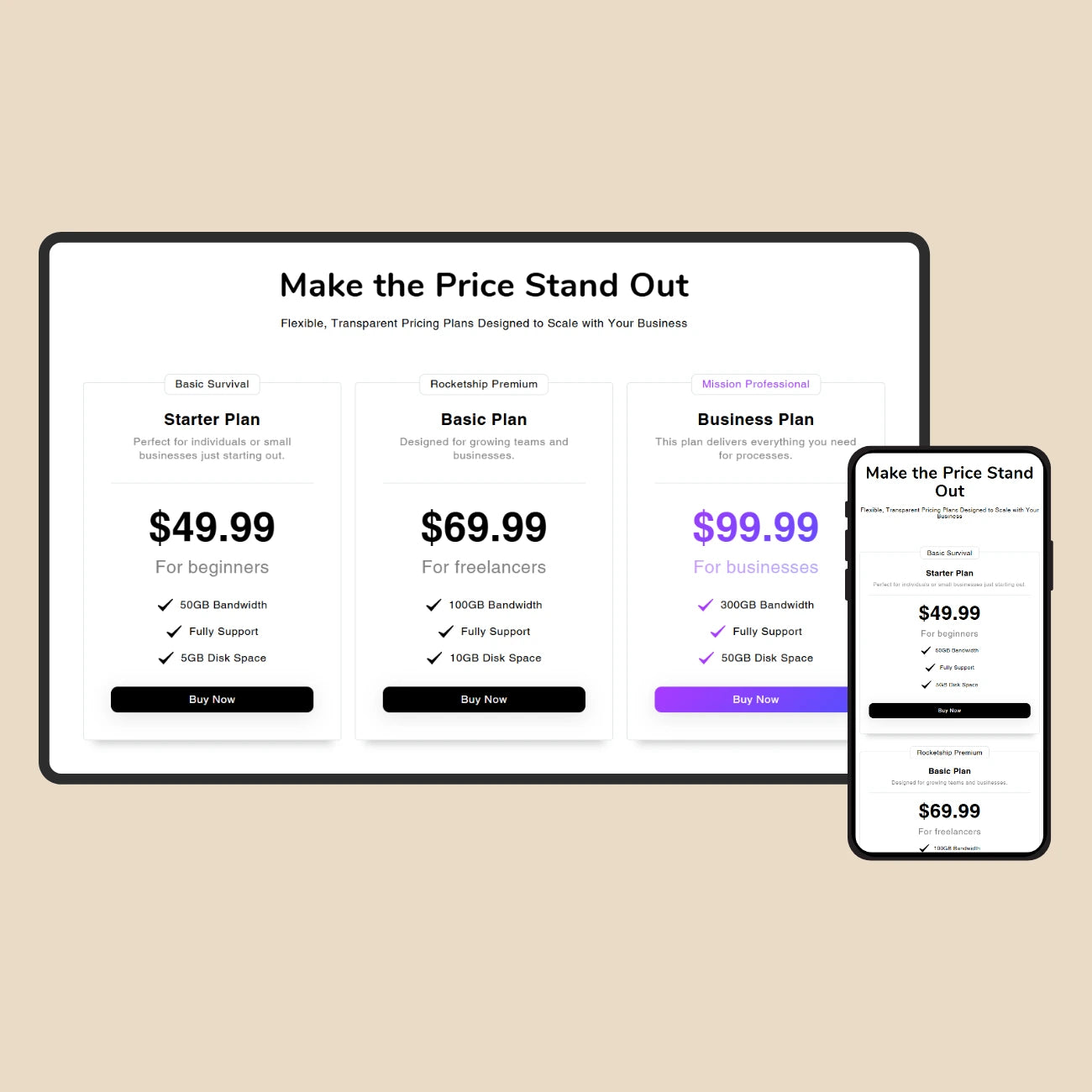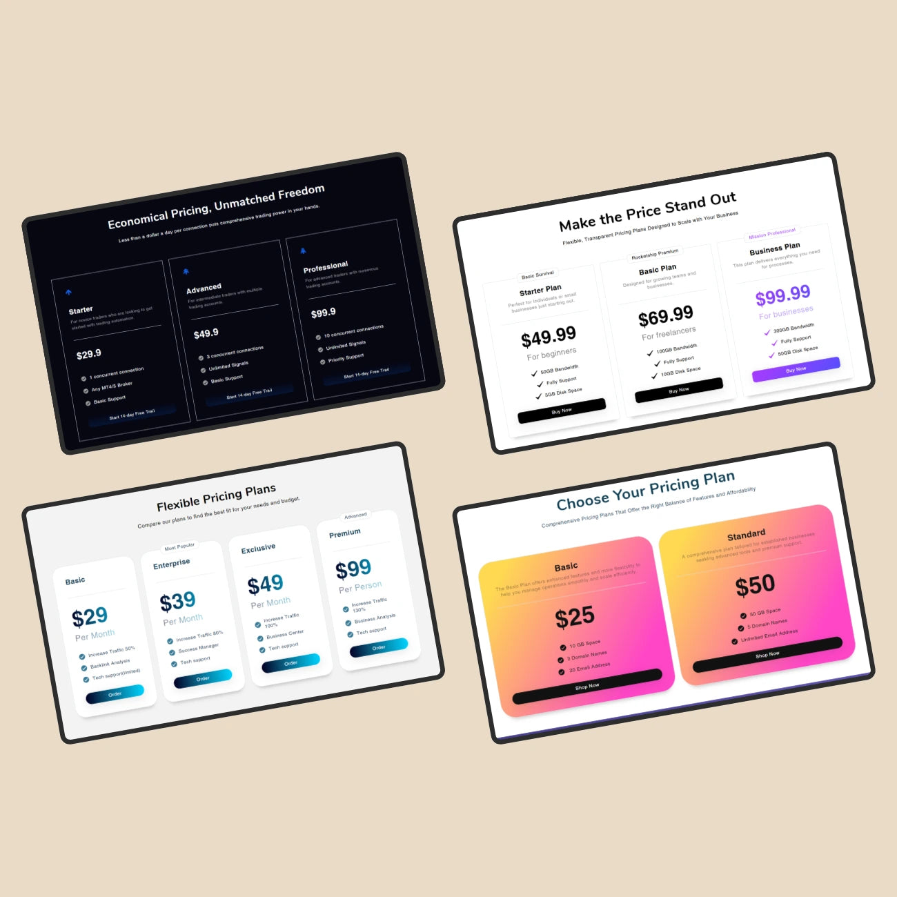 Effortlessly create professional pricing tables with Iconic - Price table Shopify theme section. No coding knowledge required, customize and choose from multiple styles to suit your business needs. Make your pricing plans stand out and attract potential customers.