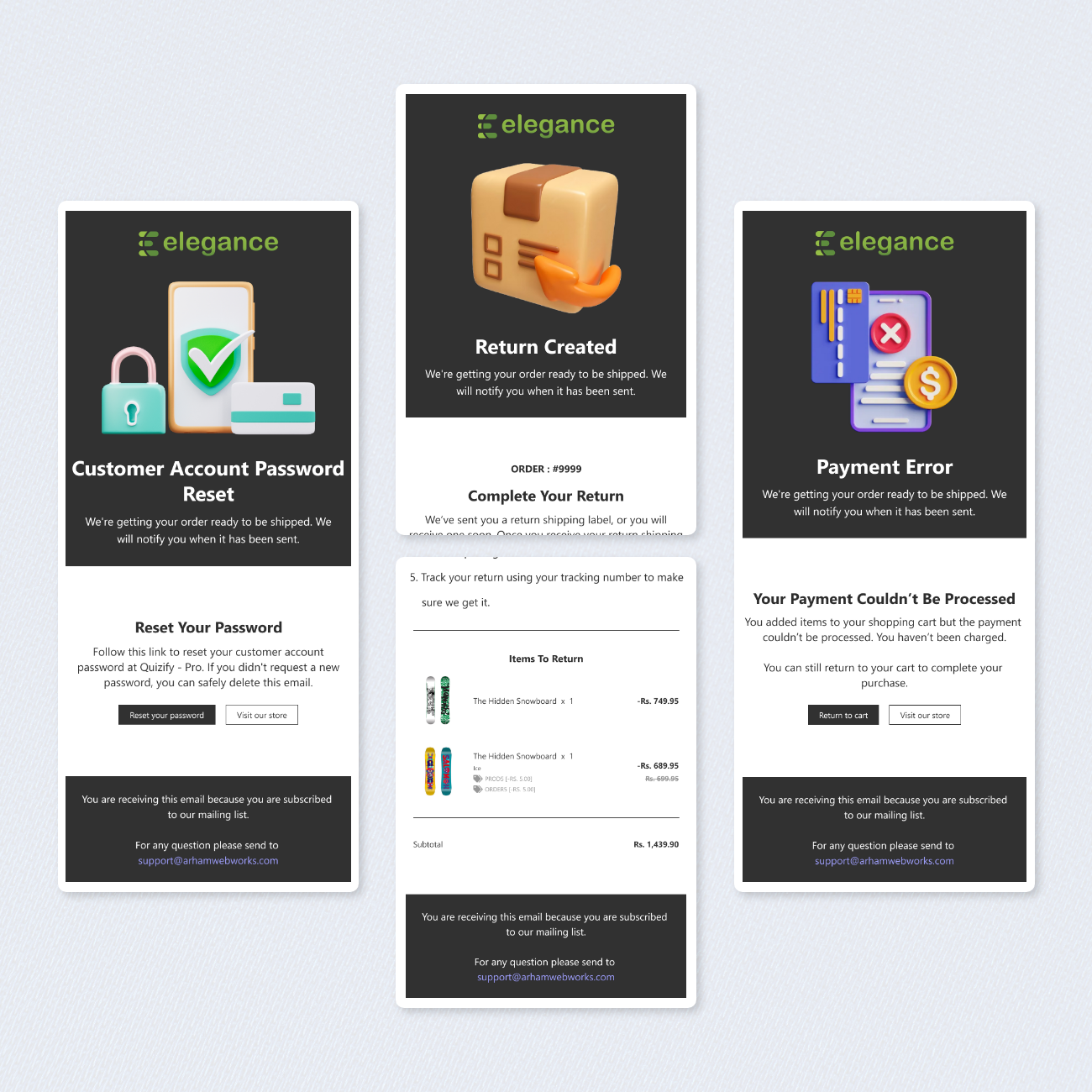 Iconic Shopify Email Notification Templates allow you to create beautifully designed and highly effective email notifications for your Shopify store. With this template, you can enhance customer experience, boost engagement, and build stronger relationships with your audience.